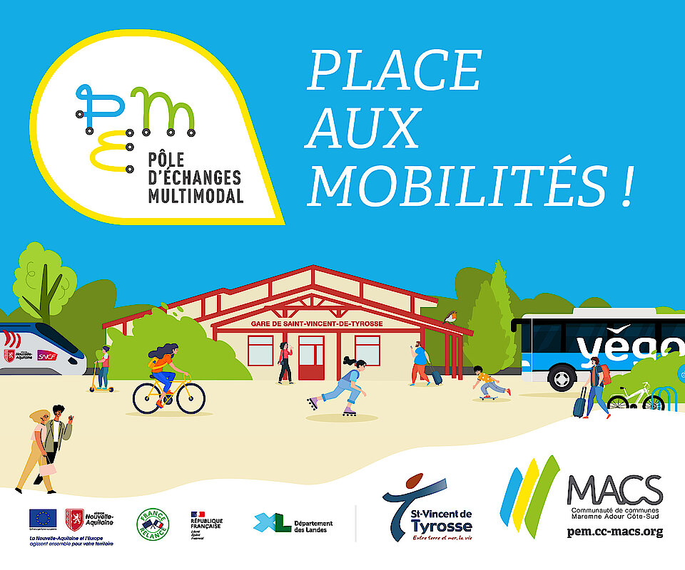 Le projet du PEM de Saint-Vincent-de-Tyrosse bénéficie du soutien de plusieurs partenaires techniques et financiers : la commune de Saint-Vincent-de-Tyrosse, l’État, la Région Nouvelle-Aquitaine, le Département des Landes, SNCF Gares et Connexions. L'aménagement du parvis du pôle d'échange multimodal a été soutenu par l'Union européenne.