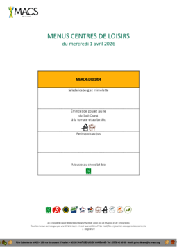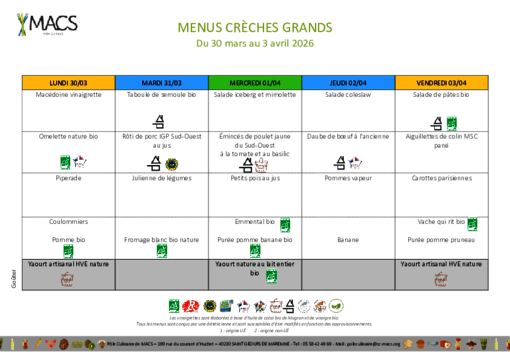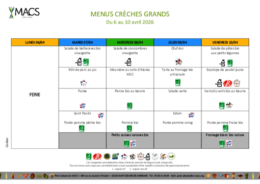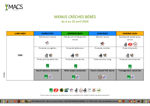 Menus : crèches, écoles, centre de loisirs, EHPAD