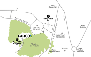 Rendez-vous parking Place Darmanté. Empruntez ensuite le sentier longeant le Complexe sportif de Labenne, au milieu des pins, pour arriver jusqu'au PARCC.