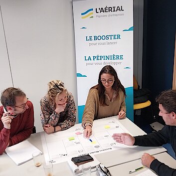 - Des ateliers collaboratifs sur des sujets choisis par les entrepreneurs eux-mêmes : stratégie de communication, juste prix, prospection, outils digitaux, et bien plus encore. L’Aérial s'adapte aux besoins réels des entreprises