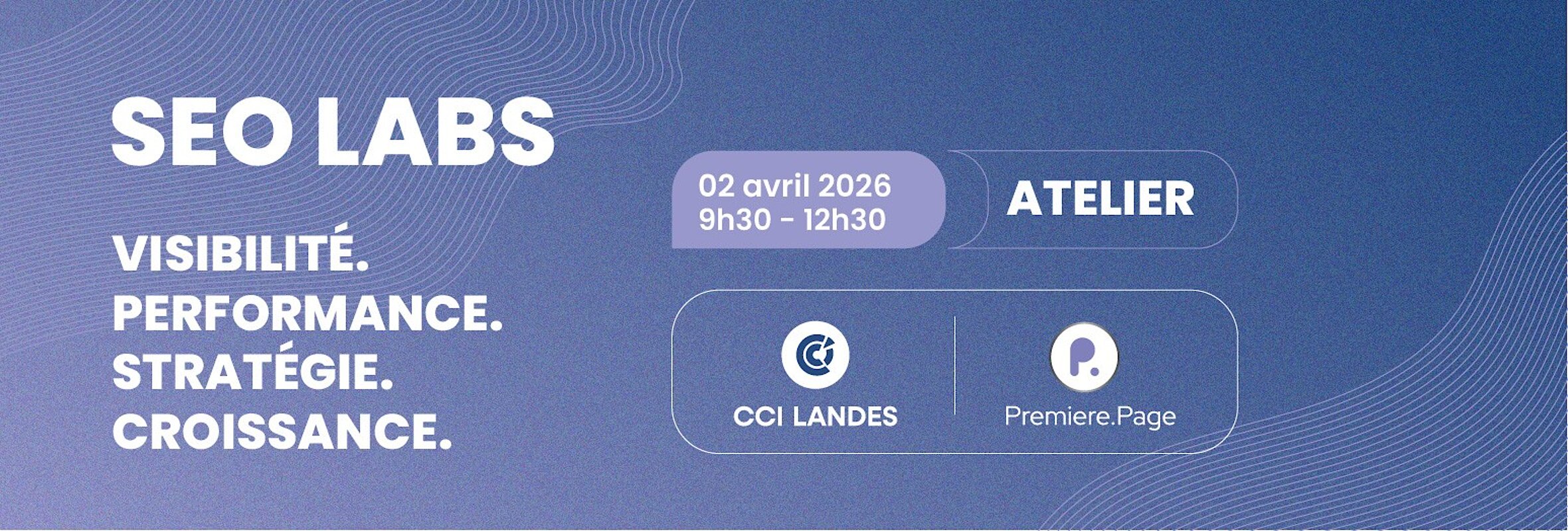 La CCI des Landes organise la 2ᵉ édition des SEO LABS avec l'appui de l'agence Premiere.Page, un atelier participatif pour découvrir concrètement les leviers du référencement naturel (SEO).