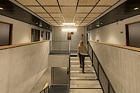 - Espaces mutualisés : office traiteur de 16 m², local repas, terrasse, local vélo, sanitaires et douches,