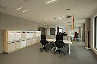 - 9 bureaux fixes de 15 m², 2 bureaux de 30 m²,