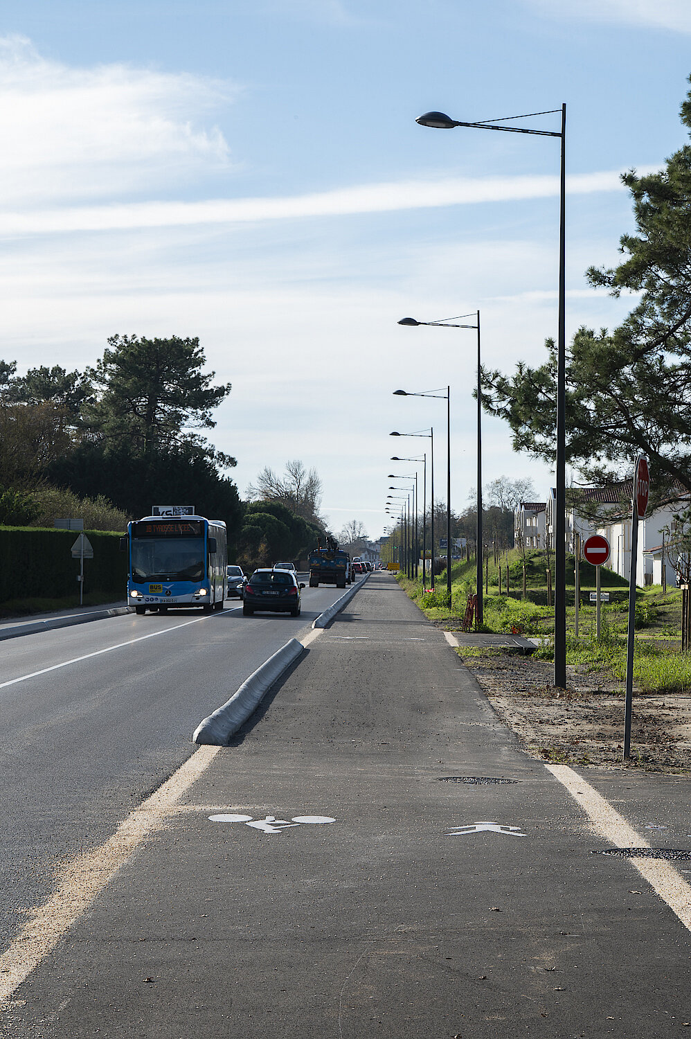 Que ce soit pour aller au travail, faire ses courses ou simplement se balader, le trajet entre le bourg et la zone commerciale de Tyrosse devient plus agréable et sécurisé. Deux voies vertes de chaque côté de la route = circuler en toute sécurité à pied ou à vélo sur cet axe très fréquenté !